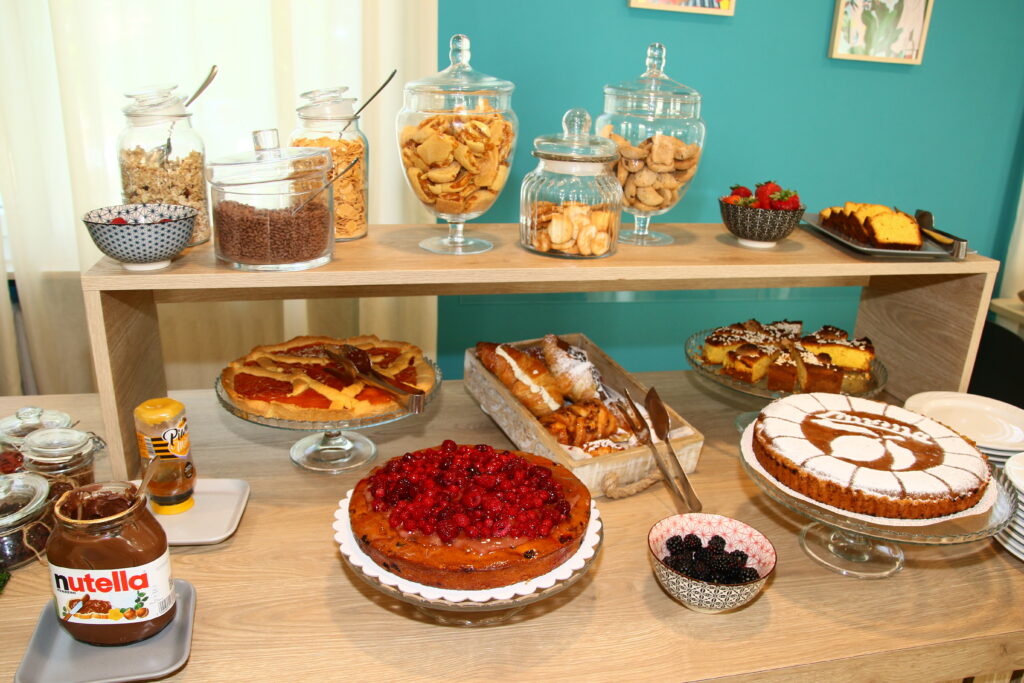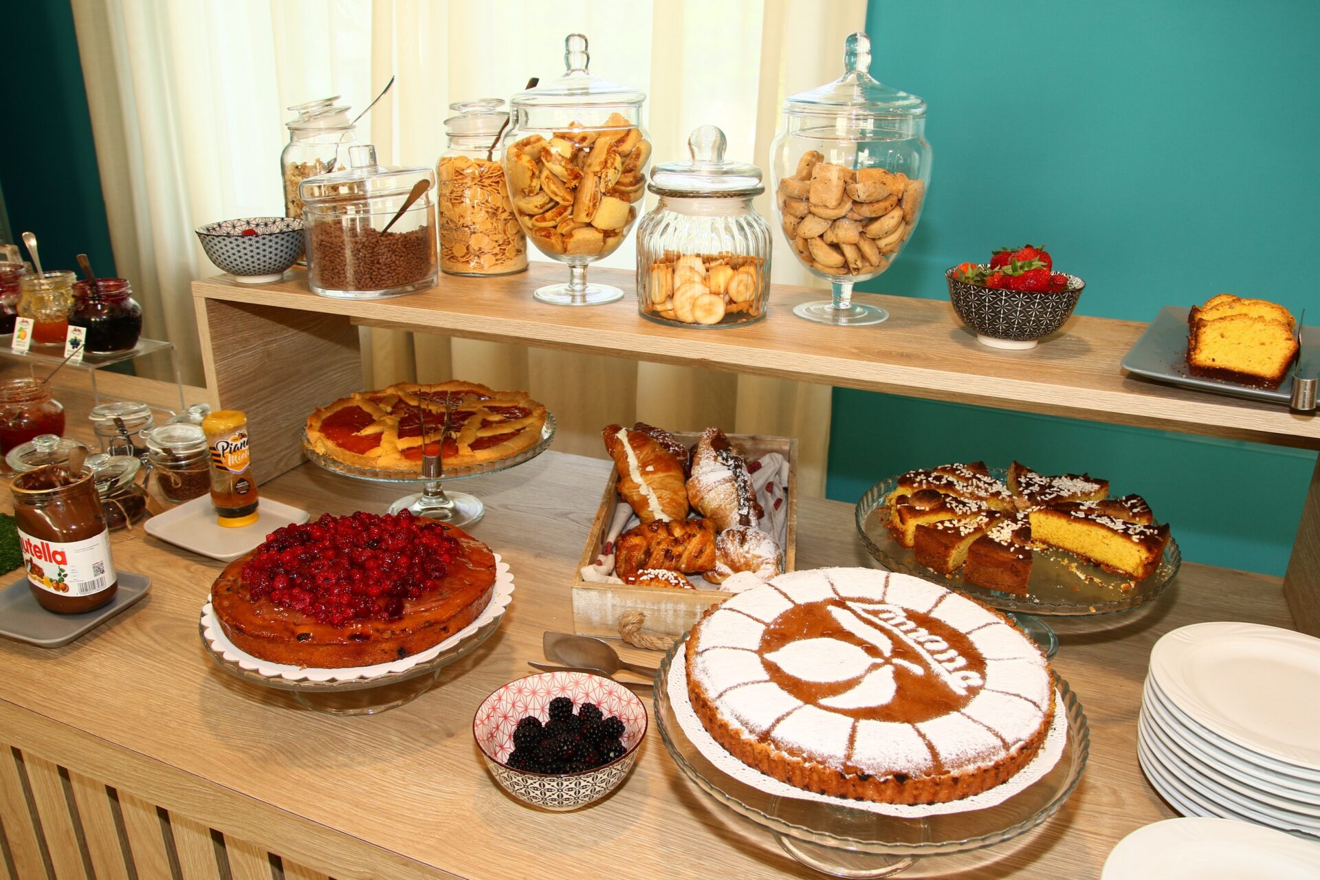 La colazione, servita dalle 7:30 alle 10:30 del mattino, è composta da un buffet a km0, ricco di dolci preparati ogni giorno in casa, croissant, piccola pasticceria, yogurt composti a piacere con varietà di semi, frutta e confetture.